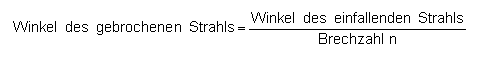 Wichtige Brechzahlen n: Luft zu Plexiglas: ca. 1,5 Luft zu Wasser: ca. 1,33 ![]() |