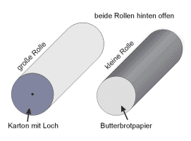 Die fertige Lochkamera sieht zum Beispiel so aus. Hier ist die äußere Rolle aus Plastik, so ist die Lochkamera noch stabiler. | ||