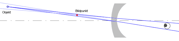 | Bei Kurzsichtigkeit muss die Brille so korrigieren, dass der Gegenstand näher am Auge erscheint. Wenig entfernte Gegenstände kann das Auge scharfstellen. |
